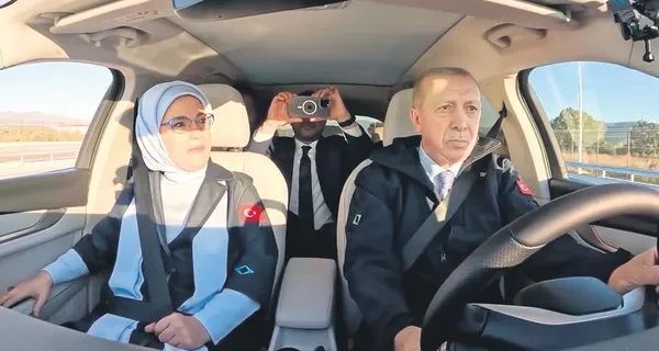 Başkan Erdoğan, sosyal medya hesabından Türkiye'nin ilk yerli otomobili Togg'u açılış töreni için fabrikaya kadar sürdüğü anların videosunu paylaştı. Emine Erdoğan'ın da içinde bulunduğu Togg'u kullanan Erdoğan, "İşte fabrika, işte banttan indirdiğimiz ilk akıllı cihaz C-SUV'u, işte Cumhuriyetimizin yeni asrının ilk kıvılcımı... İşte Türkiye Yüzyılı" dedi. Araçta yer alan Togg Üst Yöneticisi (CEO) Mehmet Gürcan Karakaş, Cumhurbaşkanı Erdoğan'a araç hakkında bilgi verdi. Emine Erdoğan'ın da bulunduğu araçta, Türk sanat müziği eserleri yol boyunca Erdoğan çiftine eşlik etti. Fatma GÖKSU/ ANKARA