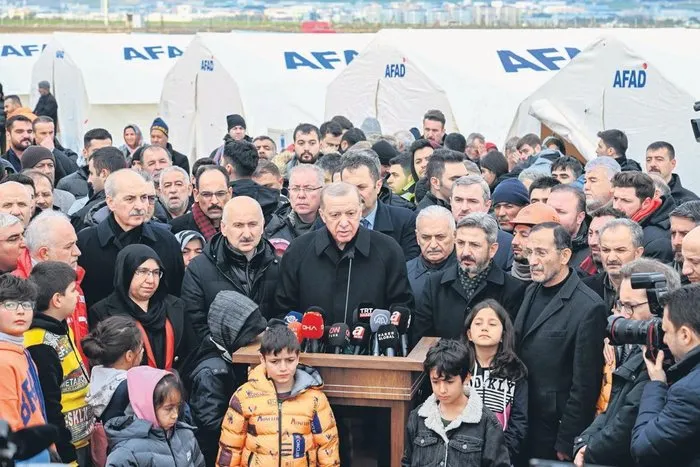 Başkan Recep Tayyip Erdoğan, dün depremin vurduğu Adıyaman ve Malatya'ya gitti. Çadırkentlerde kalan depremzedeleri ziyaret eden Erdoğan, vatandaşların taleplerini dinledi. Türkiye'nin tarihinin en büyük felaketlerinden biriyle karşı karşıya olduğunu belirten Erdoğan, şunları söyledi: