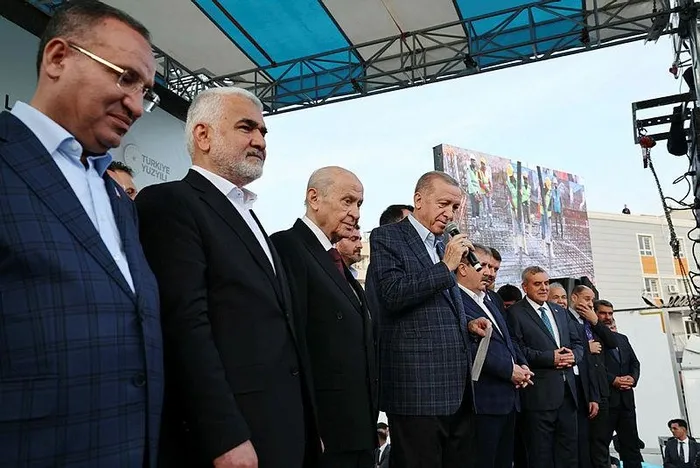 Başkan Recep Tayyip Erdoğan dün MHP Genel Başkanı Devlet Bahçeli, BBP Genel Başkanı Mustafa Destici ve HÜDA PAR Genel Başkanı Zekeriya Yapıcıoğlu ile birlikte Şanlıurfa'daydı. 18 Mart Çanakkale Caddesi'nde düzenlenen "897 Afet Konutu Temel Atma ve 659 Konut, 61 Dükkan Anahtar Teslim Töreni"ne katılan Erdoğan, şöyle konuştu: