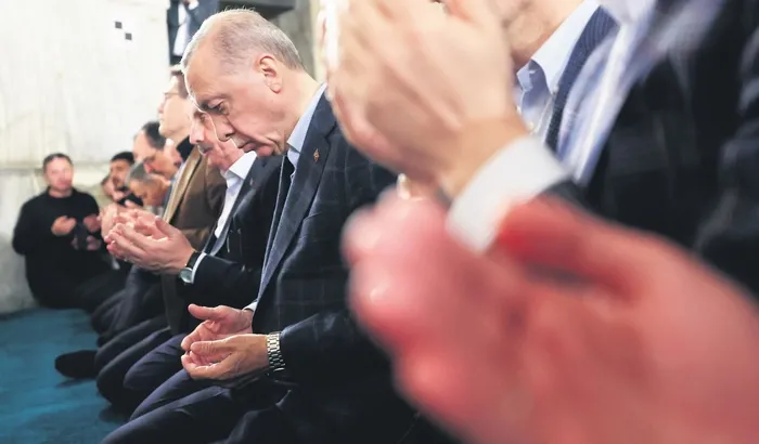 Başkan Erdoğan cemaate yaptığı konuşmada "Rabbim ayetinde buyurduğu gibi hepimiz toptan sımsıkı Allah'ın ipine sarılalım. O Allah'ın ipi Kuran'dır. Ayrılığa düşmeyin. Ayrılığa düşersek, zayıf düşeriz. Bu birlikteliğimiz daim olmalı ve bu birlikteliğimiz tüm İslam dünyasından takip ediliyor" ifadelerini kullandı. Başkan Erdoğan, namazın ardından tekbir sesleri arasında camiden ayrıldı. SABAH