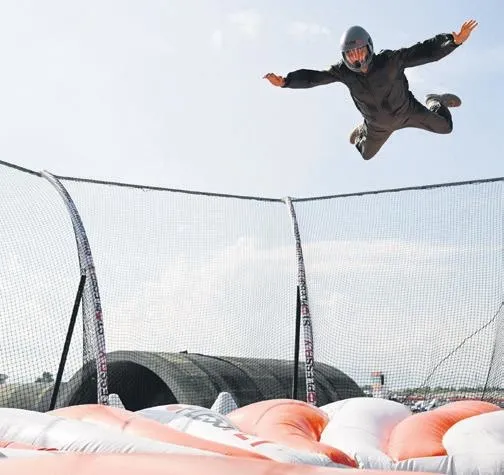 TEKNOFEST İzmir kapsamında kurulan Dikey Rüzgâr Perdesi katılımcılara uçaktan atlayan paraşütçülerin serbest düşüş tecrübesini sunuyor. Sabah erken saatlerde isimlerini yazdıran katılımcılar gün içinde eğitmenler eşliğinde ücretsiz olarak dikey rüzgâr perdesine girerek bu deneyimi yaşıyor.