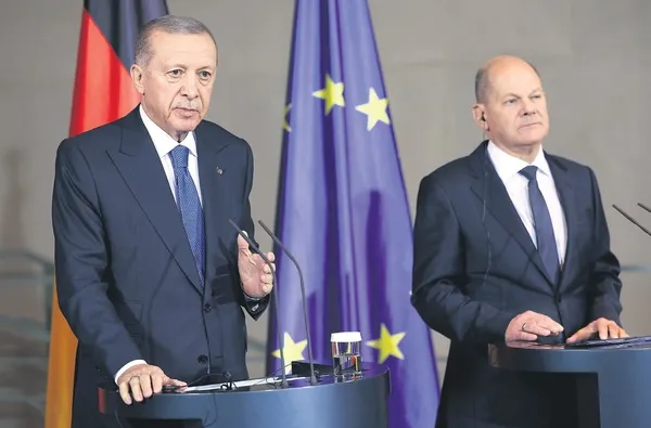 Başkan Recep Tayyip Erdoğan dün Almanya'ya günübirlik bir ziyaret gerçekleştirdi. Berlin'de ilk olarak Almanya Cumhurbaşkanı Frank-Walter Steinmeier'le bir araya gelen Erdoğan, ardından Başbakan Olaf Scholz ile bir görüşme gerçekleştirdi. Görüşme öncesi Scholz ile düzenlediği ortak basın toplantısında önemli açıklamalarda bulunan Erdoğan, şunları kaydetti:
