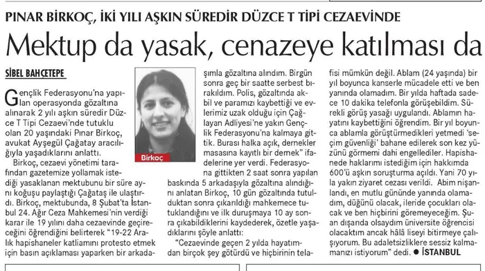DHKP-C üyesi Pınar Birkoç'un birden fazla kez cezaevinden Cumhuriyet'e demeç verdiği öğrenildi. 2019 yılında "Pınar Birkoç, iki yılı aşkın süredir Düzce T tipi cezaevinde" başlığıyla ikinci haberin de yayınlandığı ortaya çıktı.