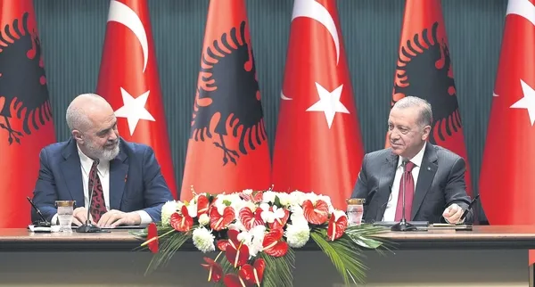 Arnavutluk Başbakanı Edi Rama, dün Türkiye'ye resmi ziyarette bulundu. Başkan Erdoğan, Rama'yı Cumhurbaşkanlığı Külliyesi'nde resmi törenle karşıladı. Erdoğan ve Rama başkanlığında "Türkiye-Arnavutluk Yüksek Düzeyli İşbirliği Konseyi Birinci Toplantısı" gerçekleştirildi ve 6 anlaşmaya imza atıldı. Daha sonra düzenlenen basın toplantısında Başkan Erdoğan şunları söyledi: