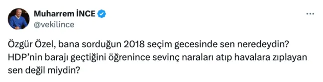 Özgür Özel, bana sorduğun 2018 seçim gecesinde sen neredeydin? HDP'nin barajı geçtiğini öğrenince sevinç naraları atıp, havalara zıplayan sen değil miydin?"