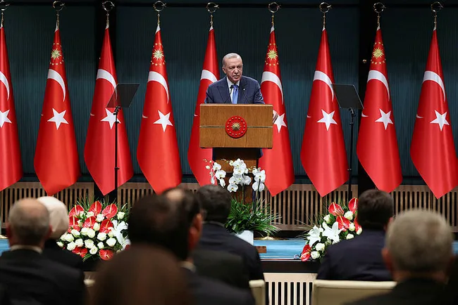 Başkan Erdoğan, Cumhurbaşkanlığı Külliyesi'ndeki Cumhurbaşkanlığı Kabine Toplantısı'nın ardından millete seslendi.
