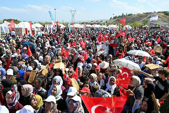 "Ataların Anadolu'ya ektikleri muhabbet, kardeşlik ve dayanışma tohumları öylesine kök saldı, öylesine büyüdü ki bin yıldır bu kardeşlik hukukunu bozmaya ve yok etmeye kimsenin gücü yetmedi. Etnik köken üzerinden bizi bölmeye çalıştılar, mezhep, meşrep üzerinden bizi ayırmak istediler. Siyasi görüş farklılıkları üzerinden nifak çıkarmaya kalkıştılar. Bölücü terör örgütü eliyle aramıza nefret duvarları örmeye kalktılar. Daha bunun gibi nice hain ve kalleş oyunla kardeşliğimizi dinamitlemek, bizi kolay yutulur lokma haline getirmek istediler. Allah'ın yardımı, aziz milletimizin basiretiyle hepsinin üstesinden geldik. 85 milyon olarak birbirimize her zamankinden daha sıkı kenetlendik. Bugün de aynısını yapıyoruz. Vatanımıza yönelik senaryoları yırtıp atarak yolumuza devam ediyoruz. Şunun bilinmesini isterim, bizler bu toprakların emanetçisi değil, asıl sahipleriyiz. Bu toprakların altında da üstünde de biz varız. Her karışında bir şehit yatan Anadolu, bizim öz yurdumuzdur. Buradaki varlığımızı hala hazmedemeyenleri, hala ham hayaller peşinde koşanları bekleyen büyük bir bozgundur, yıkımdır, ağır bir mağlubiyettir."
