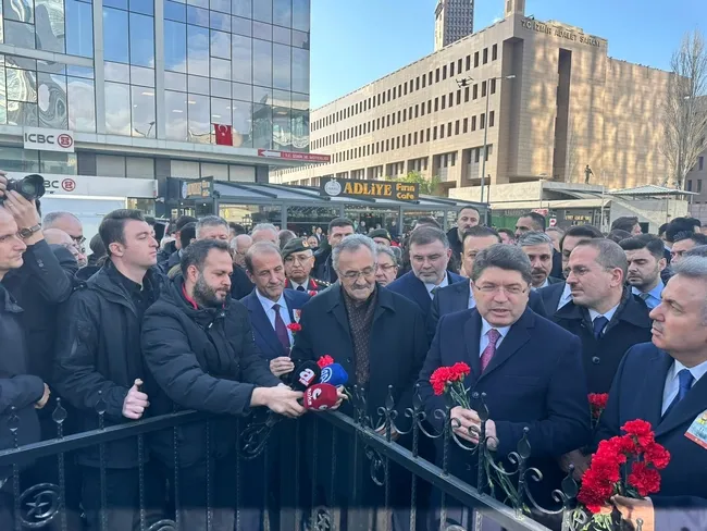 Törende konuşan Adalet Bakanı Yılmaz Tunç, "Kahraman polis memurumuzu ve Adalet teşkilatımızın kıymetli mensubunu bizden koparan bu menfur terör saldırısını gerçekleştirenleri bir kez daha nefretle temin ediyorum. Şehitlerimizin ailelerine, sevenlerine, emniyet ve yargı teşkilatımıza, aziz milletimize başsağlığı diliyorum. Şehitlerimiz, Rabbimiz katında çok yüksek bir mertebeye ulaştılar. Gönüllerimizde çok müstesna bir yer edindiler. Millet olarak onların emanetine sahip çıkmanın gayretinde olacağız. Onların adlarını ve aziz hatıralarını hiçbir zaman unutmayacağız" diye konuştu.