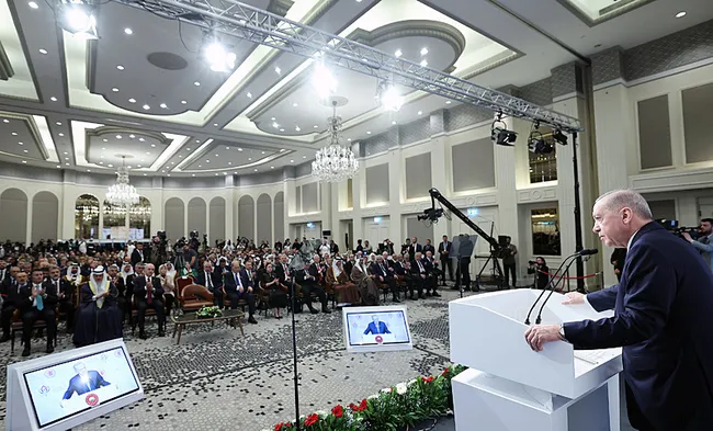 Bakın üzülerek söylüyorum, içim kan ağlayarak söylüyorum; İslam dünyası da kendisinden bekleneni maalesef yerine getirememiştir. Şüphesiz çok büyük gayretler sarf edildi. Zulmü engellemek için pek çok yol denendi. Diplomasinin bütün imkânları kullanıldı. Çok sayıda yüksek düzeyli toplantılar, zirveler ve temaslar gerçekleştirildi. Ama sonuçta Gazze'nin tamamen yıkılmasına, 60 bine yakın Gazzeli'nin katledilmesine mani olunamadı. İşte bunun üzerinde hepimizin uzun uzun düşünmesi gerekiyor. Müslümanlar olarak kapsamlı bir muhasebeye ihtiyacımız olduğu açıktır. Tabii burada şu gerçeği de vurgulamak durumundayım; Filistinliler öldürülürken seslerini çıkarmayanların, Gazze halkının işgale karşı verdiği direnişe "terörizm" yaftası yapıştırarak soykırımı normalleştirmeye çalıştıklarını görüyoruz. Türkiye olarak bu iftiraları, bu kara propagandayı reddettiğimizi bugün bir kez daha çok net bir şekilde söylemek isterim. İşlediği cinayetler ve katliamlar yaptırımsız kaldıkça, İsrail hükümeti soykırım politikasına hız veriyor. Bu insanlık düşmanı zihniyetle uluslararası hukuk önünde hesaplaşmak, hunharca katledilen on binlerce çocuğa karşı en temel görevimizdir. Unutulmamalıdır ki, cezasız kalan her suç faili daha da şımartır. Uluslararası Adalet Divanı'nda İsrail aleyhine açılan soykırım davasına bu açıdan büyük önem veriyoruz.