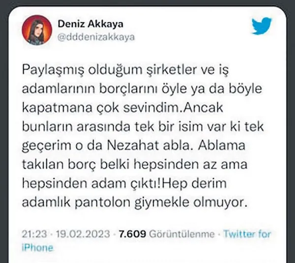 Akkaya, yaptığı paylaşımlarda bir anlatıcının videosunu yayınladı. Videoda Haluk Levent'e çağrıda bulunan anlatıcı, "Manavgat'taki arsasını iç ettiğin adam için, Almanya'daki iş adamından iç ettiğin 3.5 milyon Euro dolandırdığın iş adamı için konuşacak bir sözün var mı?" dedi ve başka şirketlerin de olduğunu sözlerine ekledi. Akkaya paylaşımında, "Anlatıcı 17 senedir milyon dolarların geri alınamadığından bahsediyor. Seslerini duyuramadıklarından bahsediyorlar, evlatlarının rızkı yenmiştir diyerek ölüm var, davamızdan dönmeyiz diyorlar. Haliyle 17 sene 17 saat içinde aşıldı. Dün ana haber saati alındı. İstedikleri olmuştu; 17 senedir ödenemeyen bu paranın ödenmesine vesile olduğumuz için pek tabii ki biz de sevindik. Bir de 17 senedir ödenmeyen milyon dolarlık inşaata olan borcu nasıl kapattınız onu da bir iliştirseniz de ben de bir hayıra imza attım diye şöyle keyifleneyim... Can Bey ödemeyi kişisel hesaptan mı yoksa vakıf hesabından mı aldı?" ifadelerini kullandı. Akkaya, paylaşımının devamında, "Paylaşmış olduğum şirketler ve iş adamlarının borçlarını öyle ya da böyle kapatmana çok sevindim. Ancak bunların arasında tek bir isim var ki, tek geçerim o da Nezahat Abla. Ablama takılan borç belki hepsinden az ama hepsinden adam çıktı! Hep derim adamlık pantolon giymekle olmuyor" dedi.