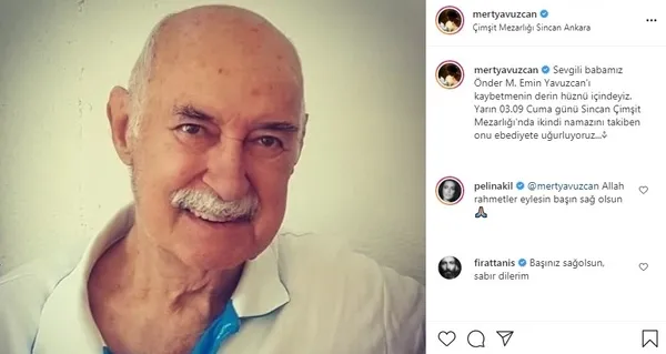 Üzüntüsünü duyuran oyuncu, "Sevgili babamız Önder M. Emin Yavuzcan'ı kaybetmenin derin hüznü içindeyiz. 03.09.2021 Cuma günü (bugün) Sincan Çimşit Mezarlığı'nda ikindi namazını takiben onu ebediyete uğurluyoruz..." ifadelerini kullandı.