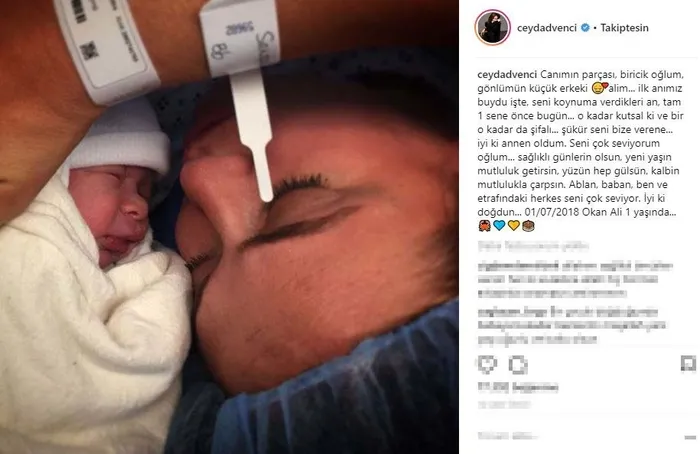 Sosyal medya hesabından doğum anından bir kare paylaşan Düvenci, duygularını şu sözlerle dile getirdi; Canımın parçası, biricik oğlum, gönlümün küçük erkeği Alim... ilk anımız buydu işte, seni koynuma verdikleri an, tam 1 sene önce bugün... O kadar kutsal ki ve bir o kadar da şifalı... Şükür seni bize verene... İyi ki annen oldum. Seni çok seviyorum oğlum... Sağlıklı günlerin olsun, yeni yaşın mutluluk getirsin, yüzün hep gülsün, kalbin mutlulukla çarpsın. Ablan, baban, ben ve etrafındaki herkes seni çok seviyor. İyi ki doğdun... 01/07/2018 Okan Ali 1 yaşında...