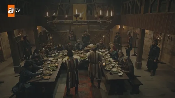 Osman Bey, misafirleri için mükellef bir sofra hazırlattı. Söğüt'teki handa verilen yemekte Malhun Hatun, Bala Hatun, Gündüz Bey, Selcan Hatun, Göktuğ Alp, Boran Alp, Aygül Hatun, Kumral Abdal, Şeyh Edebalı ile Vali Saguros ve kızı Hera yer aldı. Vali Saguros'un çarşıdaki ziyareti sırasında beklediği fırsatı elde edemeyen Julia ve savaşçıları, hanın mutfağına sızarak Osman Bey'in sofrasına saldırmayı planladı.