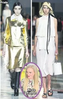 Aksesuvarlarda, büyük formlu deniz kabuklu kolye ve platformlu ayakkabılar dikkatimi çekti. Defilenin yıldız isimleri Gigi Hadid ve Kaia Gerber'di. Prada defileleri, ünlü konuklarıyla da ilgi çeken defilelerdendir.