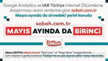 Türkiye'de internet ölçümleme araştırması yapan Gemius'un verilerine göre; Sabah.com.tr, geçtiğimiz Mayıs ayında da tüm takipçilerini geride bırakarak dijital medya sektöründe en çok ziyaret edilen haber sitesi oldu. Siyasi gündemden spora, magazinden ekonomi haberlerine kadar tüm kategorilerde okurlarına en hızlı ve özgün haberleri ulaştıran Sabah. com.tr Genel Yayın Yönetmeni İsa Tatlıcan şunları söyledi: