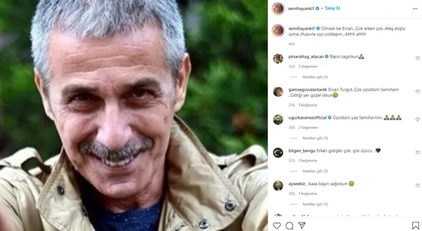 Kötü haberi Semiha Yankı sosyal medya hesabından böyle duyurdu: Olmadı be Ercan...Çok erken çok..Ateş düştü içime.. Huzurla uyu yoldaşım...Ahhh ahhh
