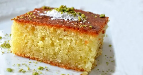 Fırından çıkarılan keki kesilir ve sıcak kekin üstüne soğumuş şerbet dökülür.
