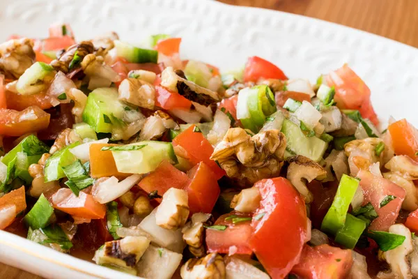 Öncelikle salatalıkları küçük küp halinde doğrayın. Domatesleri de aynı şekilde küçük küp halinde doğrayın ardından maydanozu da ince ince doğrayın.