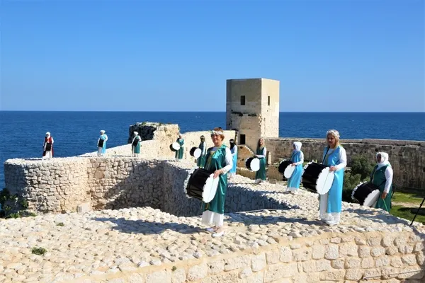 Tarihe inat sapa sağlam ayakta duran Kızkalesi surlarına çıkan 33 kadın söylediği ağıtla kalplere dokundu. Tutulan ritimle kalpler bir atıyor mesajının verildiği programda, 'Kadına Şiddete Hayır' pankartını kalenin surlarından Erdemli Belediye Başkanı Mükerrem Tollu açtı.