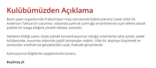 Öte yandan kavga iddialarının sosyal medyadan yayılması üzerine siyah beyazlı kulüp resmi açıklama yayınladı.