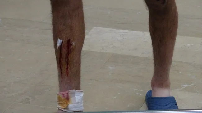 Zuta, daha sonra Skrtel'in müdahalesi sonucunda ayağında oluşan yaralanmayı gösterdi.