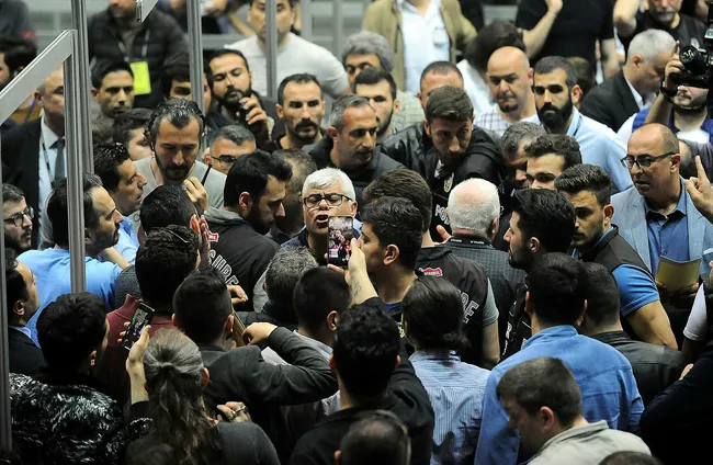 Kongre üyeleri uzun süre 'Sendika dışarı' ve 'Beşiktaş'ın sahibi taraftarıdır' diye tempo tuttu. Gerginlik bir süre devam ederken polis ekiplerinin olaya müdahale edip sendika üyelerini salon dışına çıkartmasıyla sona erdi.