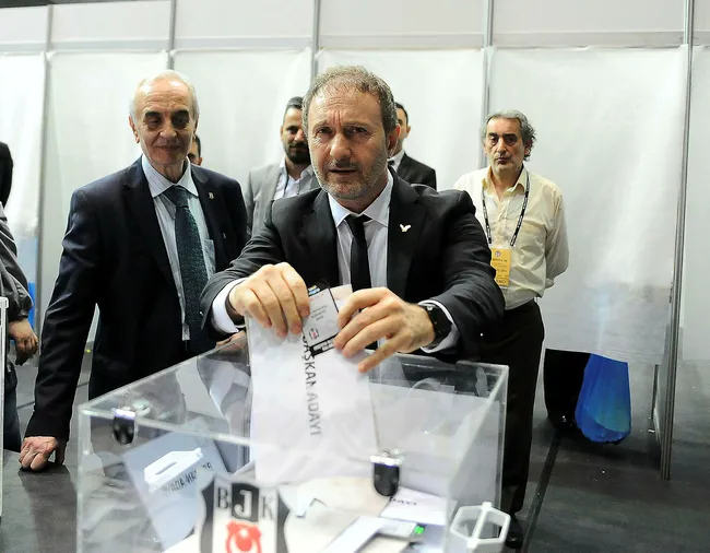 BJK Akatlar Spor ve Kültür Kompleksi'nde gerçekleştirilen olağan seçimli genel kurulda başkan adaylarından Hürser Tekinoktay, 2 numaralı sandıkta oyunu kullandı.