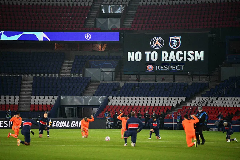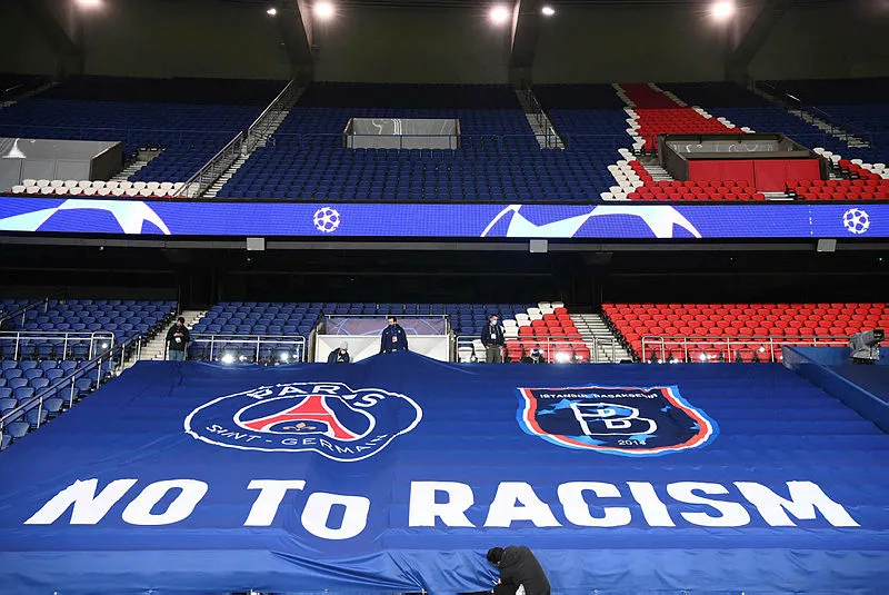 Maçın oynandığı Parc des Princes Stadı'nın tribünlerinde ırkçılık karşıtı pankartlar yer aldı. Tribünlerde, PSG ve Medipol Başakşehir'in logolarının bulunduğu pankartlarda İngilizce ve Fransızca olarak "Irkçılığa Hayır" yazısı yer aldı. Kale arkasındaki tribünde de "Webo'ya destek. Oyuncularla gurur duyuyoruz. Irkçılığa karşıyız." pankartı asıldı.