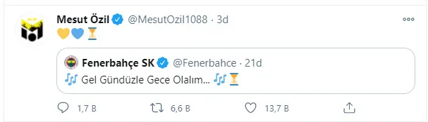 Mesut Özil, Fenerbahçe'nin bu paylaşımını alıntılayarak, sarı lacivert emoji ile kum saati kullandı.