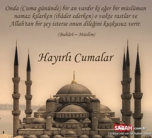 Allah'tan bir dua gibi, Peygamber'den bir armağan gibi sevabınız bol olsun! Cumanız mübarek olsun.