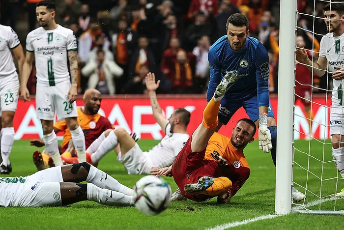 33' Galatasaray'da Halil Dervişoğlu'nun kafa vuruşunu Okan Kocuk güçlükle çıkardı.