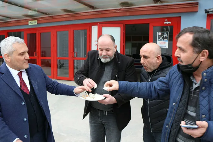 Kardemir Karabükspor Kulübü Başkanı Mehmet Yüksel, maç sonunda helva dağıttı.