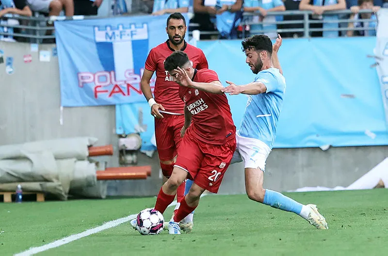 42. dakikada Malmö tehlikeli geldi. Birmancevic'in pasıyla Demir Grup Sivasspor ceza sahası içinde topla buluşan Ceesay'in topuna Caner Osmanpaşa ayak koydu. Karşılaşmanın ilk yarısı Malmö'nün 2-1'lik üstünlüğüyle tamamlandı.