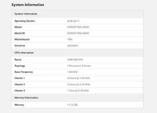 Ankit isimli Twitter kullanıcısı tarafından paylaşılan GeekBench sonuçlarına göre TNA-AN00 model numaralı Honor 60 Pro'da Snapdragon 778G+ işlemci, Android 11 işletim sistemi ve 12 GB RAM var.