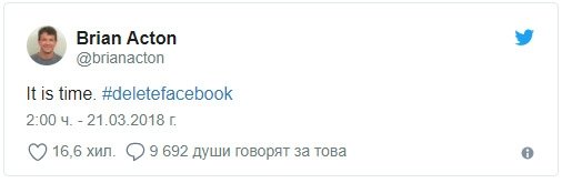 ?Facebook, 2014 yılı içerisinde mesajlaşma ağı WhatsApp'ı toplamda 16 milyar dolara satın almıştı. Bu satın almanın ardından kullanıcı sayısını her geçen gün arttıran WhatsApp büyümesini ise hala devam ettiriyor. Bunun yanı sıra bu satışla birlikte büyük bir servetin sahibi olan WhatsApp'ın kurucu ortağı Brian Acton, bugün itibarıyla Facebook'u silme hareketi başlattı.