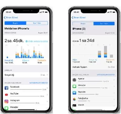 Ebeveynler Ekran Süresi özelliği ile haftalık kullanım raporları alabiliyor veya belirli bir uygulamanın ne kadar kullanıldığını, alınan bildirimleri ve cihazların kullanılma sıklığını görebiliyorlar. Ekran Süresi özelliği ayrıca ebeveynlerin çocukların hangi uygulamalarda ve web sitelerinde ne kadar zaman geçireceklerini belirleme konusunda da yardımcı oluyor. Çocuklar ebeveynlerinden onay alarak istedikleri uygulama ya da web sitesinde, mesela eğitim uygulamalarında, daha fazla zaman geçirebiliyorlar. Ebeveynler ayrıca, çocuklarının kullandığı uygulamalara gün ve süre ayarı yapabiliyorlar, örneğin dilerlerse hafta sonu biraz daha fazla uygulama kullanıma izin verebiliyorlar.