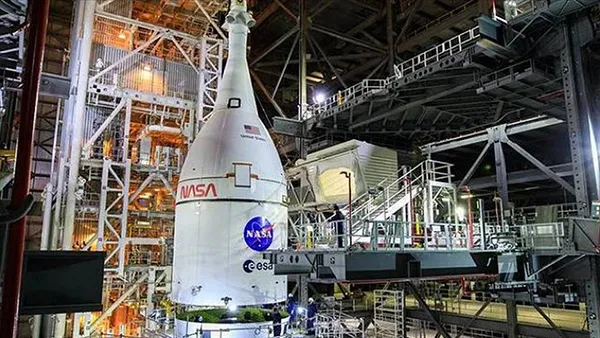 NASA'dan yapılan açıklamada, Uzay Fırlatma Sistemi (SLS) roketinin Orion uzay aracına entegre edildiği ve Ay'a gerçekleştirilecek mürettebatsız uçuş testlerinde son aşamaya gelindiği belirtildi.