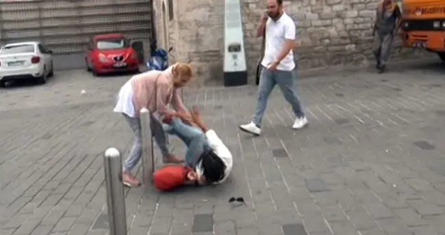 Taksim Meydanı'nda omuz atma yüzünden iki genç kız arasında tartışma çıktı. Tartışma kısa sürede kavgaya dönüşürken, kızlardan bir tanesi kaçmaya başladı. Kavga ettiği diğer kız ise arkadaşıyla birlikte kaçan kızın peşinden koşarken, kısa bir süre sonra yakalayıp saçından çekti. Genç kızlardan bir tanesi yere düşerek tekmelerle kendisini korumaya çalıştı.