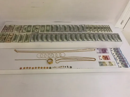 Poşetin içinde yaklaşık 250 bin lira değerinde 8 bilezik, 10 cumhuriyet altını, 6 bin dolar, ziynet eşyaları ve 8 altın diş ele geçirildi.