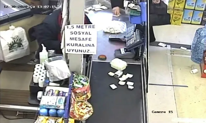 Olay, Kıbrıs Şehitleri Caddesi'nde bulunan bir markette meydana geldi. Markette alışveriş yapan bir kadın aldığı ürünlerin parasını ödemek için kasaya geldi. Kasiyere 100 TL veren kadın müşteri, satın aldığı ürünleri poşete koymak için aldığı para üstünü kenara bıraktı.