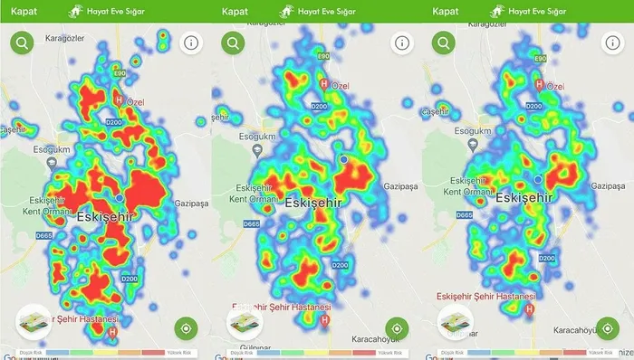 Eskişehir, Bilecik ve Kütahya'daki vaka oranları, güncellenen HES uygulamasındaki risk haritasına da yansıdı.