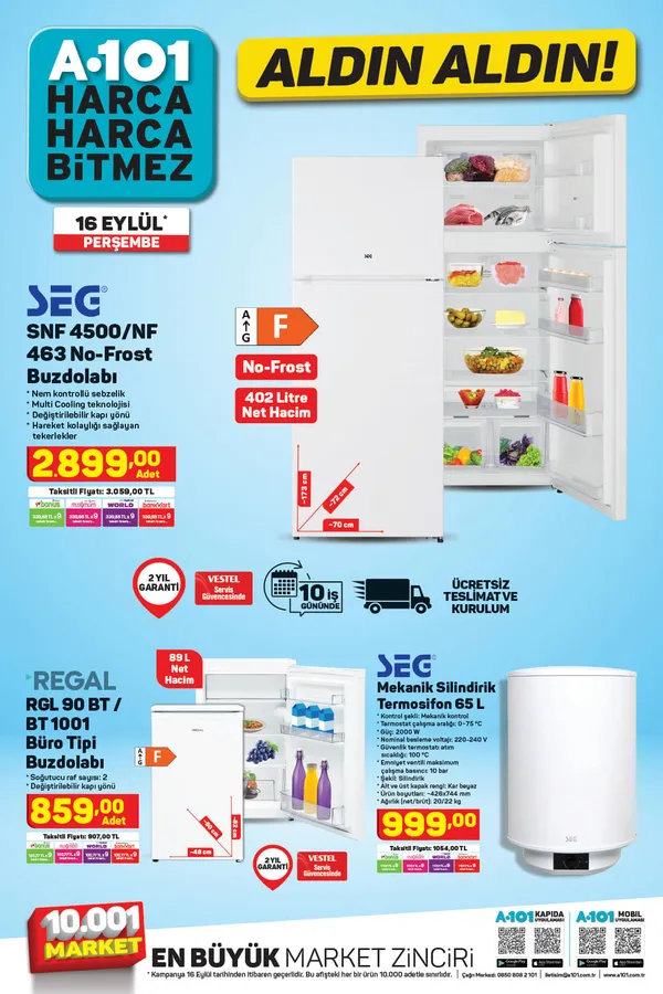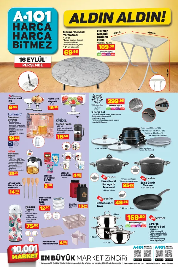 A101 aktüel ürünler kataloğu indirimli tam liste halinde belli oldu. Perşembe günü başlayacak olan indirimli ürünlerde ayakkabı, masa, buzdolabı, ütü, mikrodalga fırın yer alıyor. İhtiyaçları doğrultusunda alışveriş yapmak isteyenler A101 16 Eylül 2021 aktüel ürünler kataloğunda bu hafta neler var sorusunun yanıtını arıyor. İşte dopdolu A101 aktüel ürünler kataloğu 16 Eylül 2021