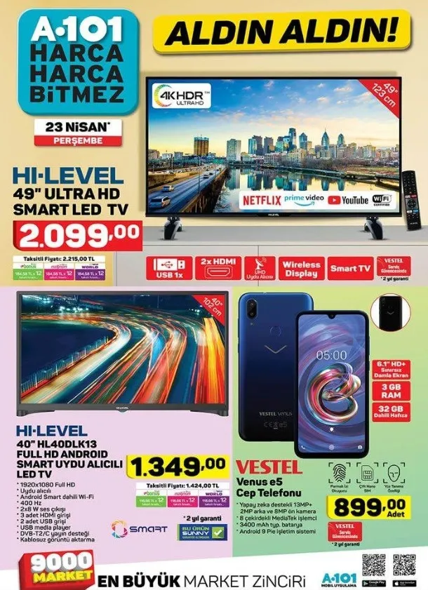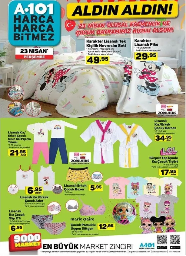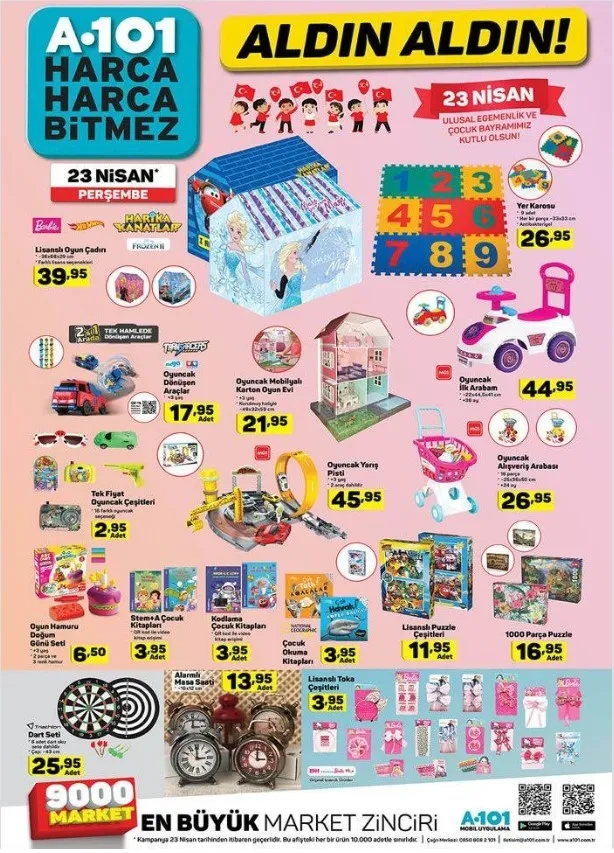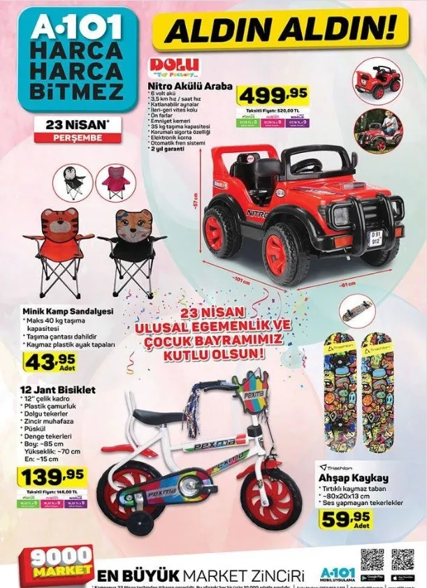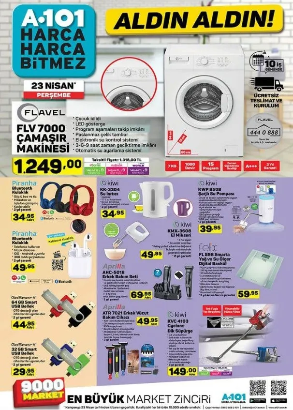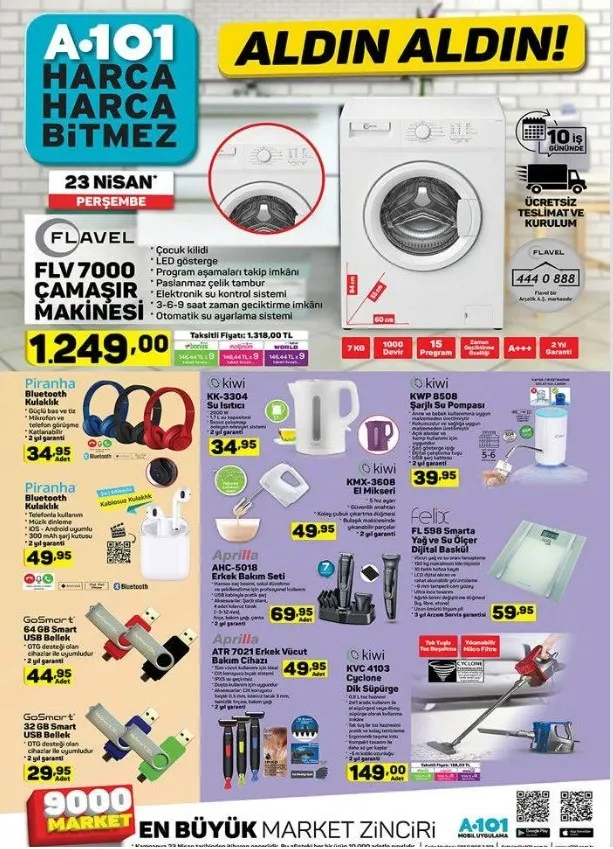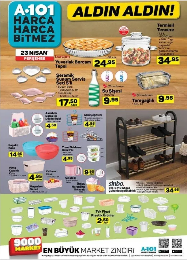Bu haftaya ilişkin A101 aktüel ürünler kataloğu tam listesi yayınlandı. Perşembe günleri raflarda yerini alacak olan katalog ürünleri merakla bekleniyor. Hem her zevke hem her cebe hitap eden A101 aktüel ürünlerde bu hafta; kapaklı kase 14,95 TL, Un Eleği 9,995 TL, Ölçülü Narenciye Sıkacağı 9,95 TL, Sinbo Ahşap Çubuklu Ayakkabılık 34,95 TL gibi fiyatlardan başlıyor. Özellikle 23 Nisan Ulusal Egemenlik ve Çocuk Bayramı'na özel çocuklar için sürpriz oyuncaklar indirimler ile birlikte gelirken elektronik ve teknolojik aletlerdeki indirimler dikkatleri çekiyor. Buna göre; haberimizin içerisinden A101 aktüel ürünler kataloğu tam listesine ulaşabilirsiniz.