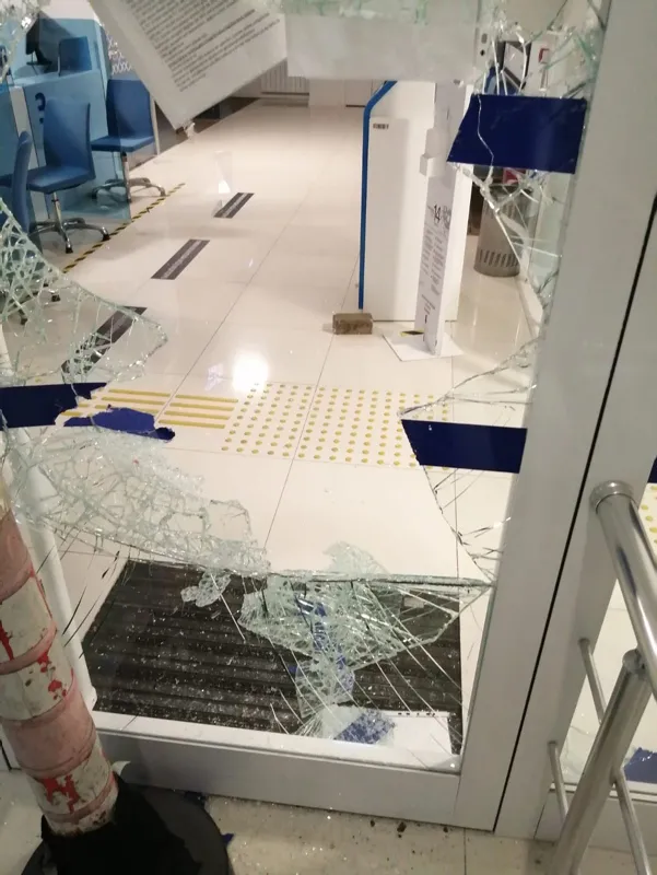 Bir kaç kez vurduktan sonra camı kıran şüpheli, ardından yanında bulunan duba ile camı genişleterek içeri girdi.