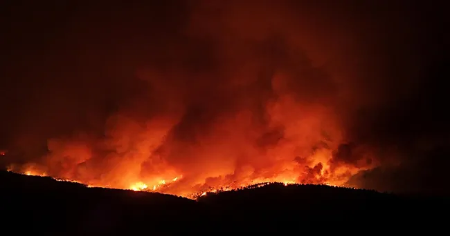 Orman yangınına 12 uçak, 18 helikopter, 343 kara aracı ve 1300 personelle müdahale ediliyor.