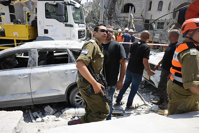 Bat Yam'da füzenin isabet ettiği binada arama kurtarma çalışmaları devam ediyor.