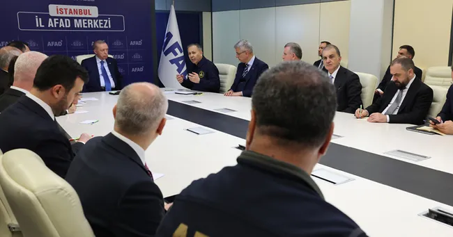 Hasdal'daki İstanbul İl Afet ve Acil Durum Müdürlüğünde bulunan kriz merkezini ziyaret eden Erdoğan'a, ilgili bakanlar ve yetkililer tarafından kapsamlı brifing verildi. Erdoğan, yaklaşık 1 saatlik toplantının ardından buradan ayrıldı.