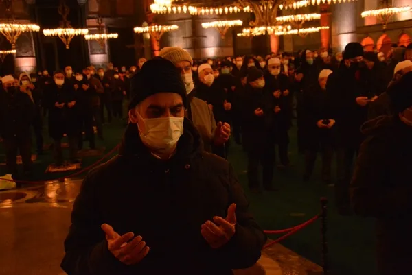 Diyanet İşleri Başkanı Prof. Dr. Ali Erbaş, 86 yıl sonra cami olarak yeniden ibadete açılan Ayasofya Camii'nde düzenlenen Regaib Kandili programına katıldı. Erbaş'ın yanı sıra programa İstanbul Valisi Ali Yerlikaya, İstanbul Emniyet Müdürü Zafer Aktaş, Fatih Belediye Başkanı Ergün Turan ve yüzlerce vatandaş katıldı. Program öncesinde camiyi dolduran vatandaşlar yatsı namazını kıldı.