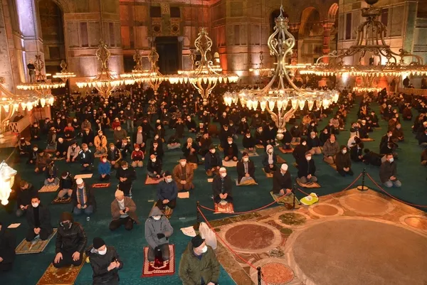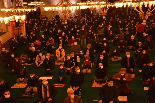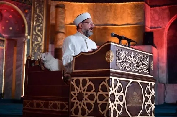 Diyanet İşleri Başkanı Prof. Dr. Ali Erbaş, "Mübarek bir vakitte bir araya geldik. Camilerimizde ve evlerimizde niyaza durdur. Fatih Sultan Mehmet Hanı'n yadigarı Ayasofya Cami Şerifi'nden Akşemseddin Hazretlerinin kürsüsünden sizleri selamlıyorum. Allah'ın bereketi sizlerin üzerine olsun" dedi.