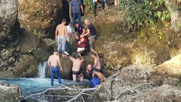 Şelalede bulunanların şaşkın bakışları arasında yaşanan olayın ardından itfaiye kurtarma ekibi ve bazı vatandaşlar ırmağa atlayarak İ.A. ve F.Ş.'yi kıyıya çıkardı.